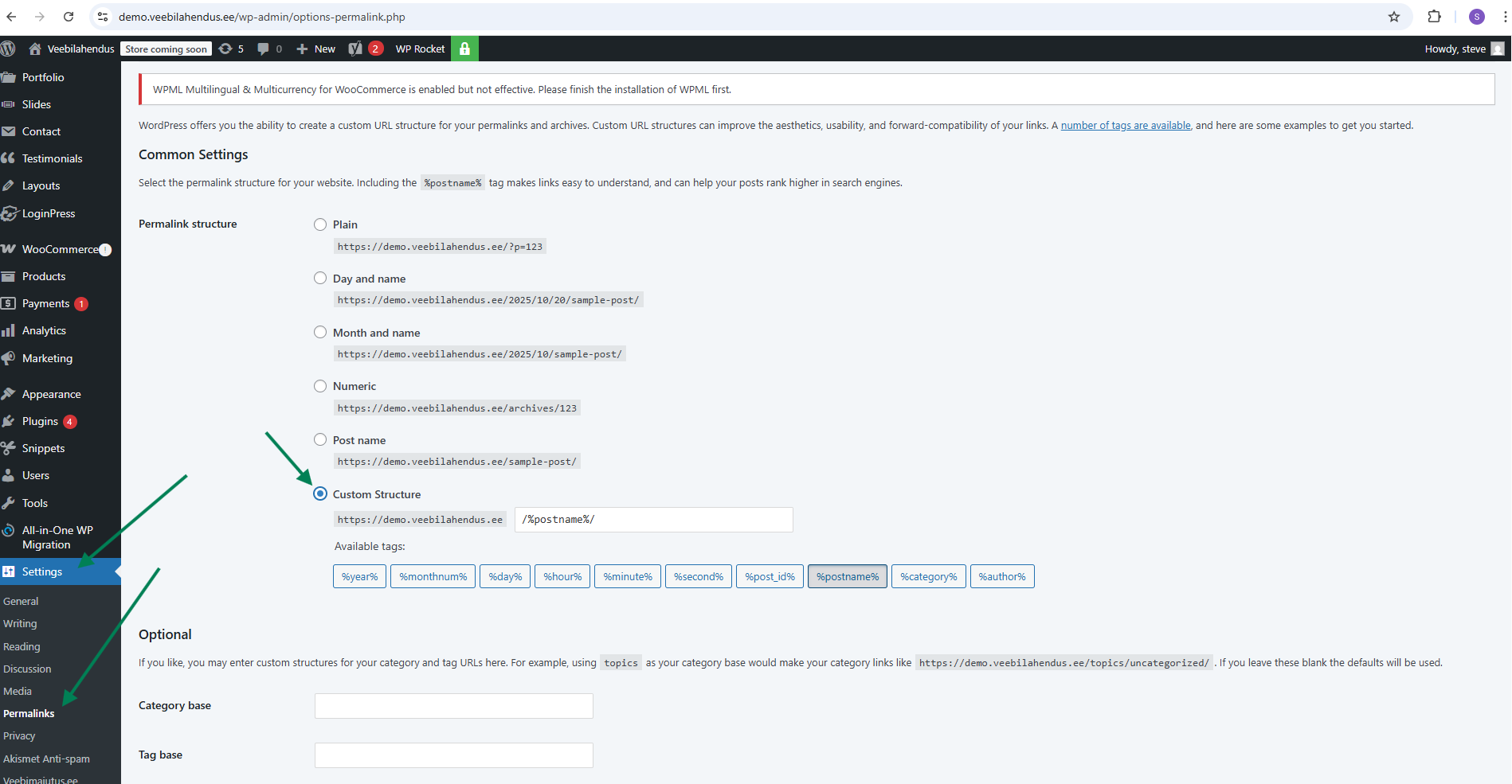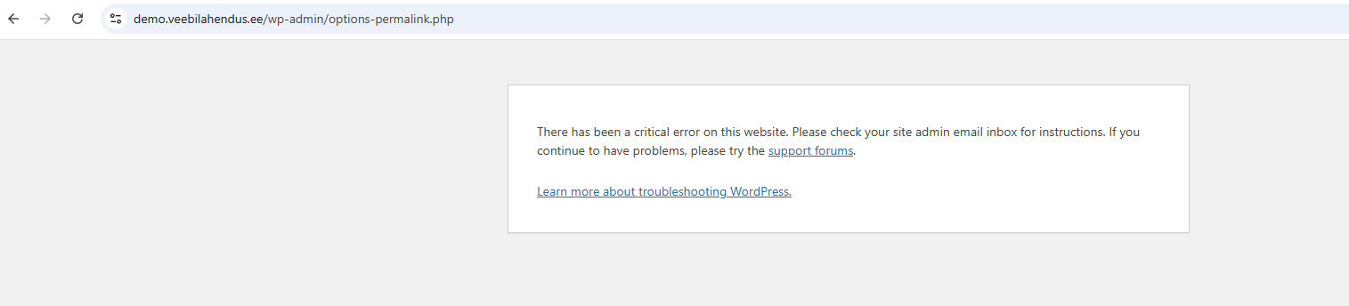 Sent and in addition, there’s an issue when trying to change permalinks — the following error appears: