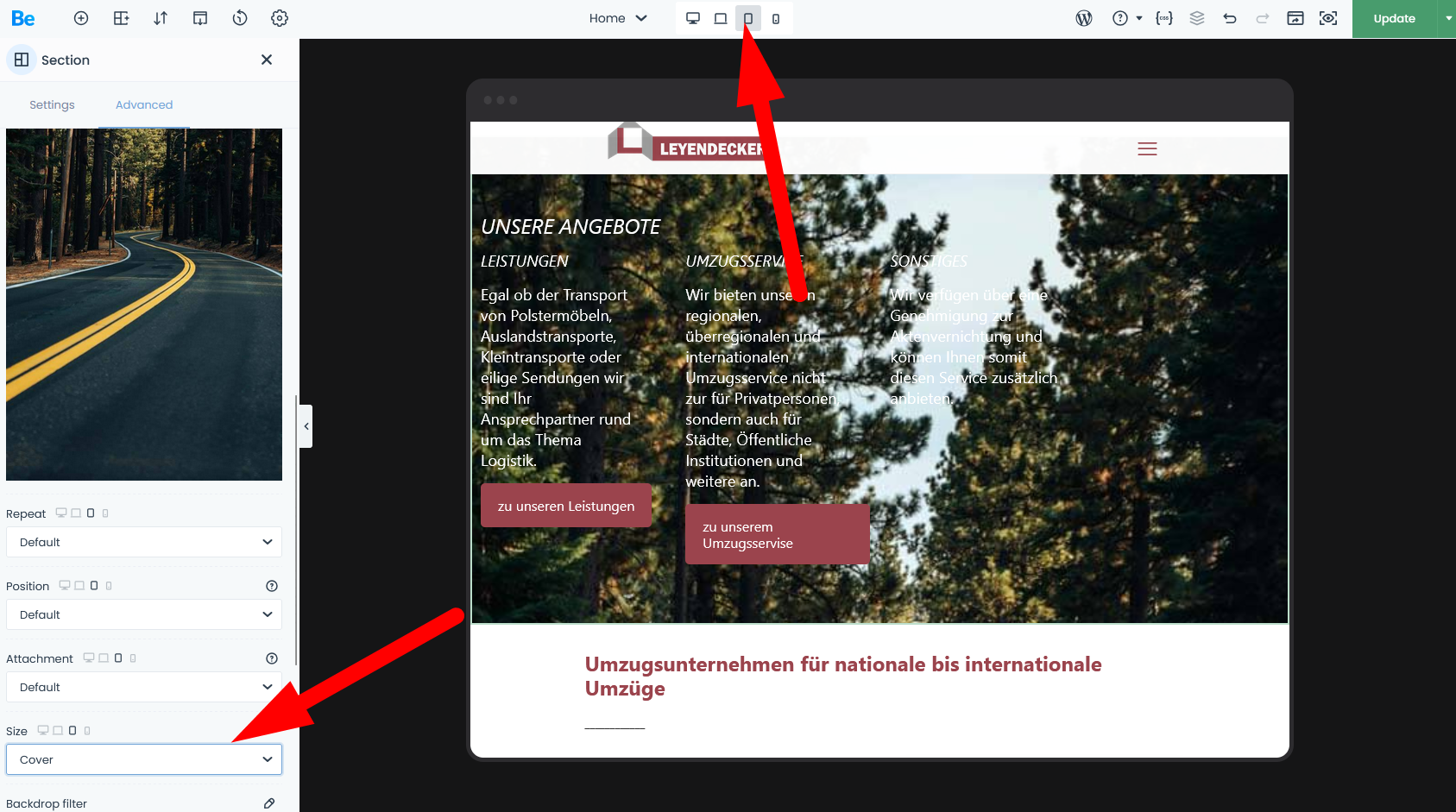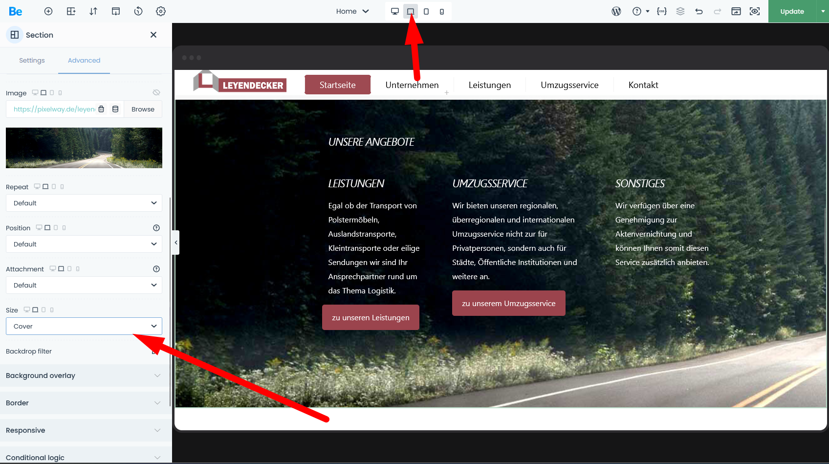 https://www.spedition-leyendecker.de/ corresponds to iPad_screen_2