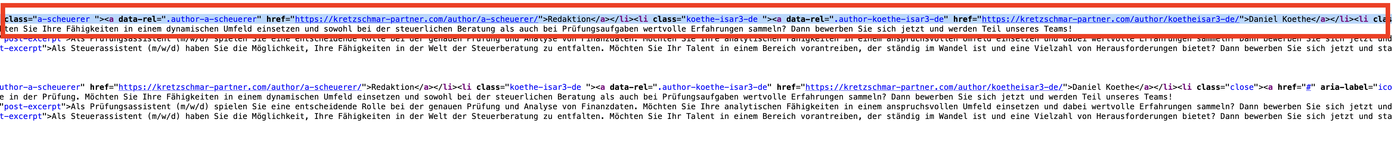 Except for the PHP changes, I´ve done everything recommended by Rankmath on this page https://rankmath.com/blog/remove-the-author-name-wordpress/ and still I see the Users in the Code here: https://kretzschmar-partner.com/kanzlei/jobs/