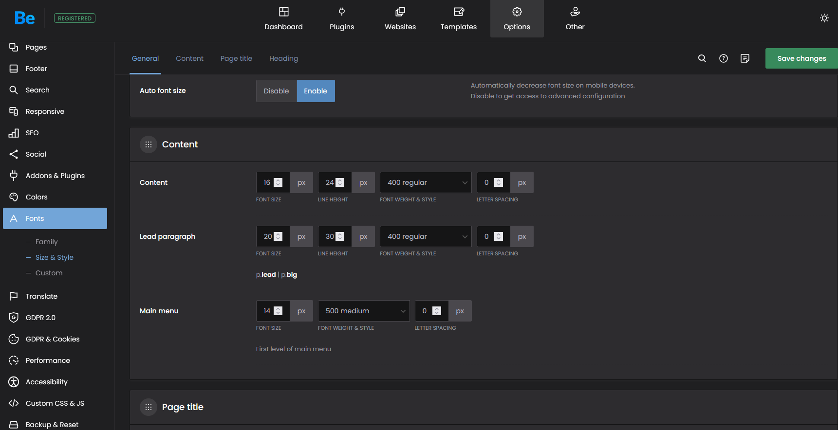 If you want to change the font size, line height, and font weight, go to the Size & Style tab: