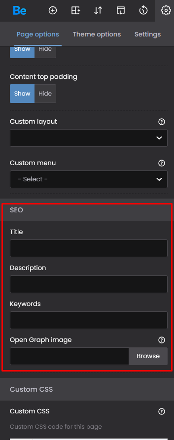 If you mean what options can be found in Betheme, then there are basic ones which can be found in Betheme -> Theme options -> SEO, or in the Page Options if you want to set it per page.