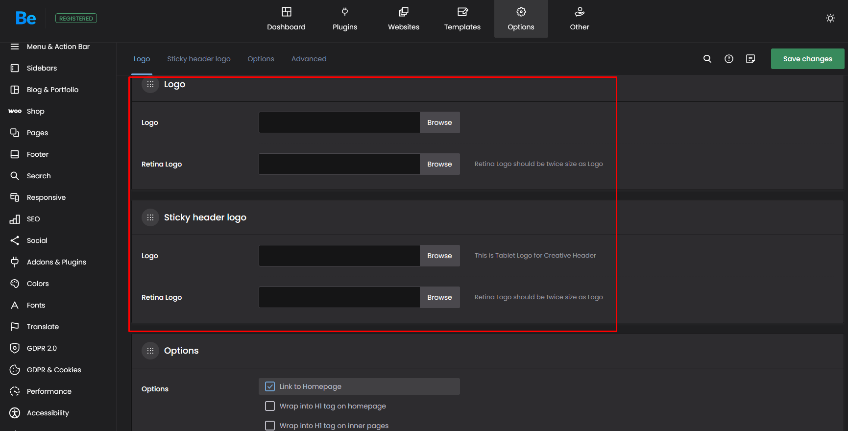 Please go to Betheme -> Theme options -> Global -> Logo, and change it there.