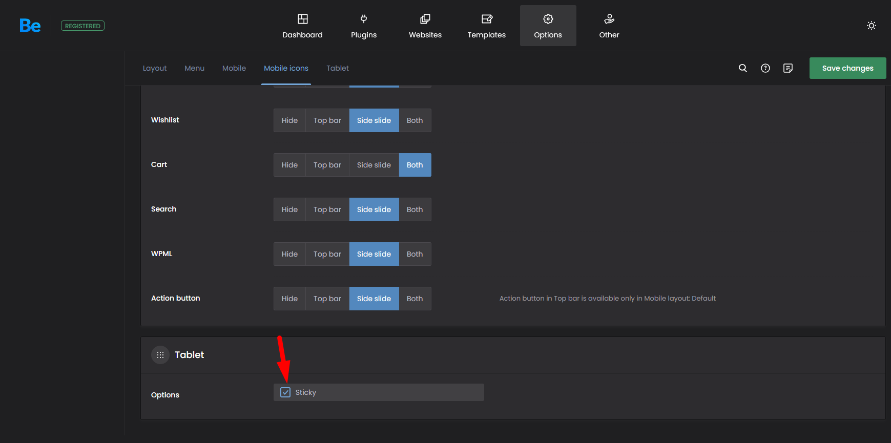 Please ensure that the Sticky option for Tablet in Betheme -> Theme options -> Responsive -> Header, is checked: