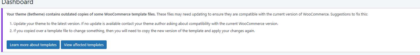 "" Your theme (Betheme) contains outdated copies of some WooCommerce template files. These files may need updating to ensure they are compatible with the current version of WooCommerce. Suggestions to fix this: