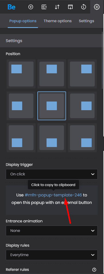 i am configuring a button and I need the popup id, of a template I have created in Templates.