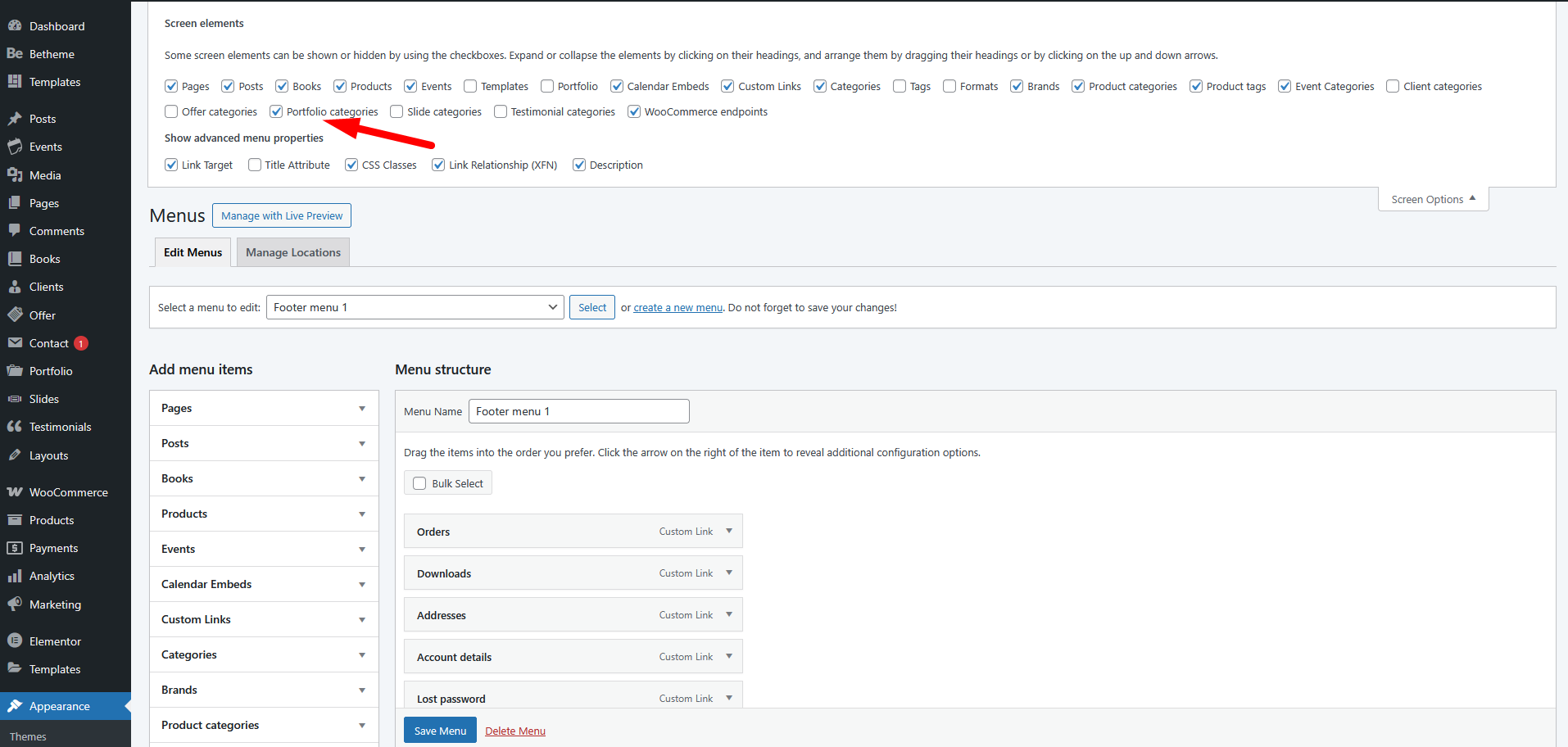 In addition, I would like to use each portfolio category page as a submenu item under “Portfolio” in the main navigation menu — but to do that, I need each category page to be editable or customizable (for example with Elementor or BeBuilder).