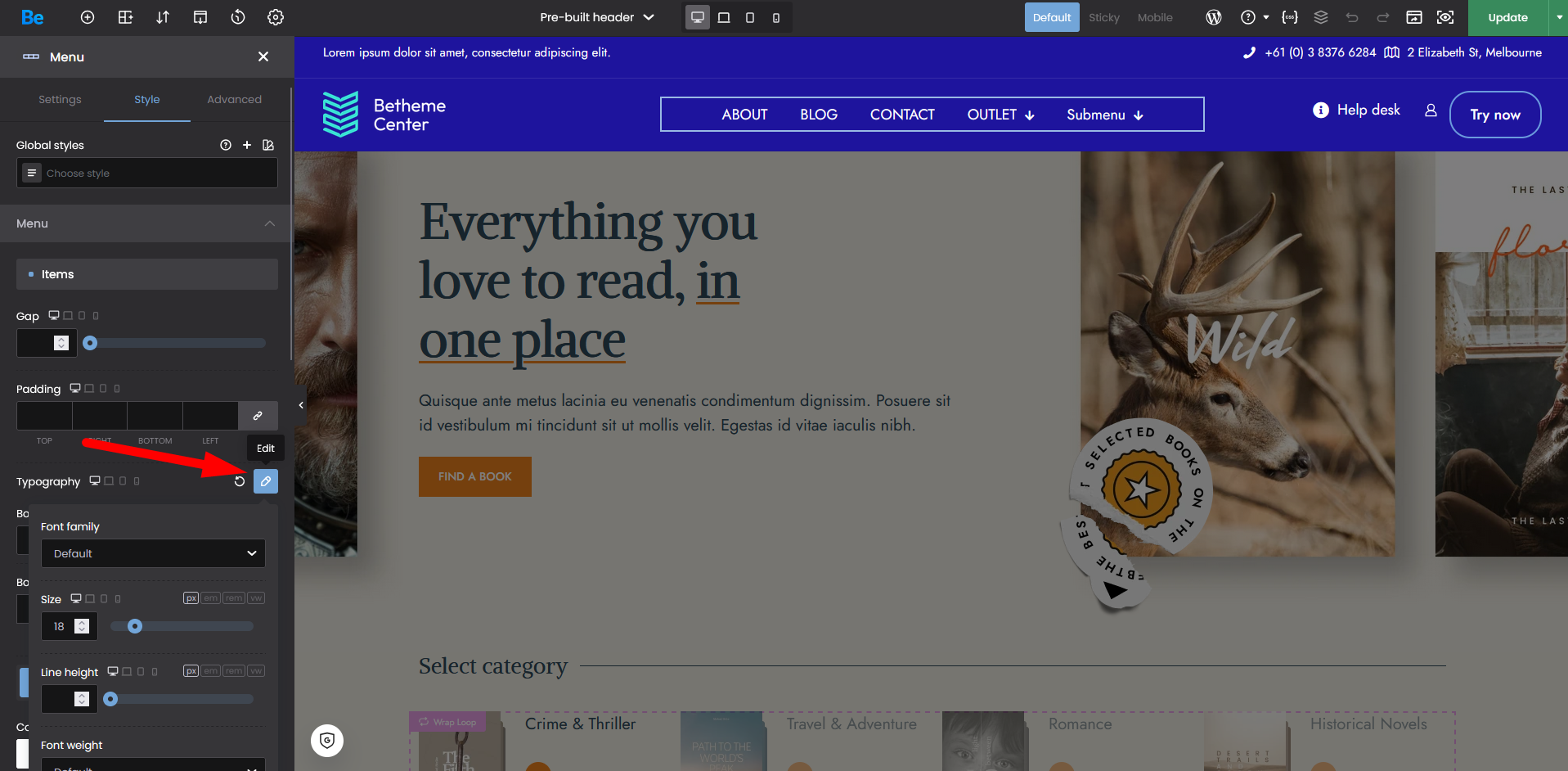 This worked for the menu items thanks for you help. Im still running into an issue where the submenus do not inhairet these style from the main menu. I cannot find a typography setting for the submenus only the main menu items. Any insight would be super helpful.