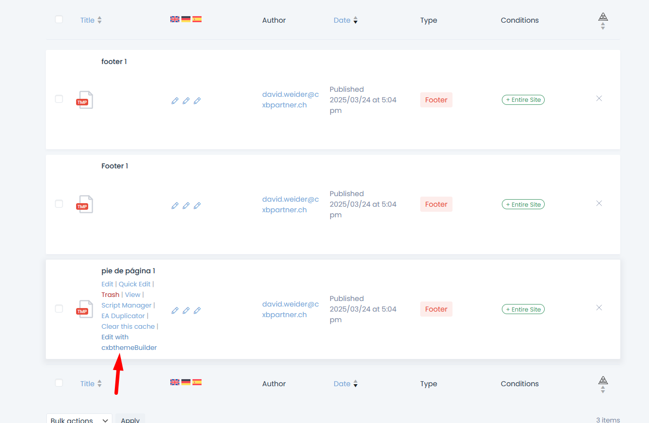2. I have a footer designed with the Betheme Template, and it is translated into all languages, but it also does not appear on the front end.