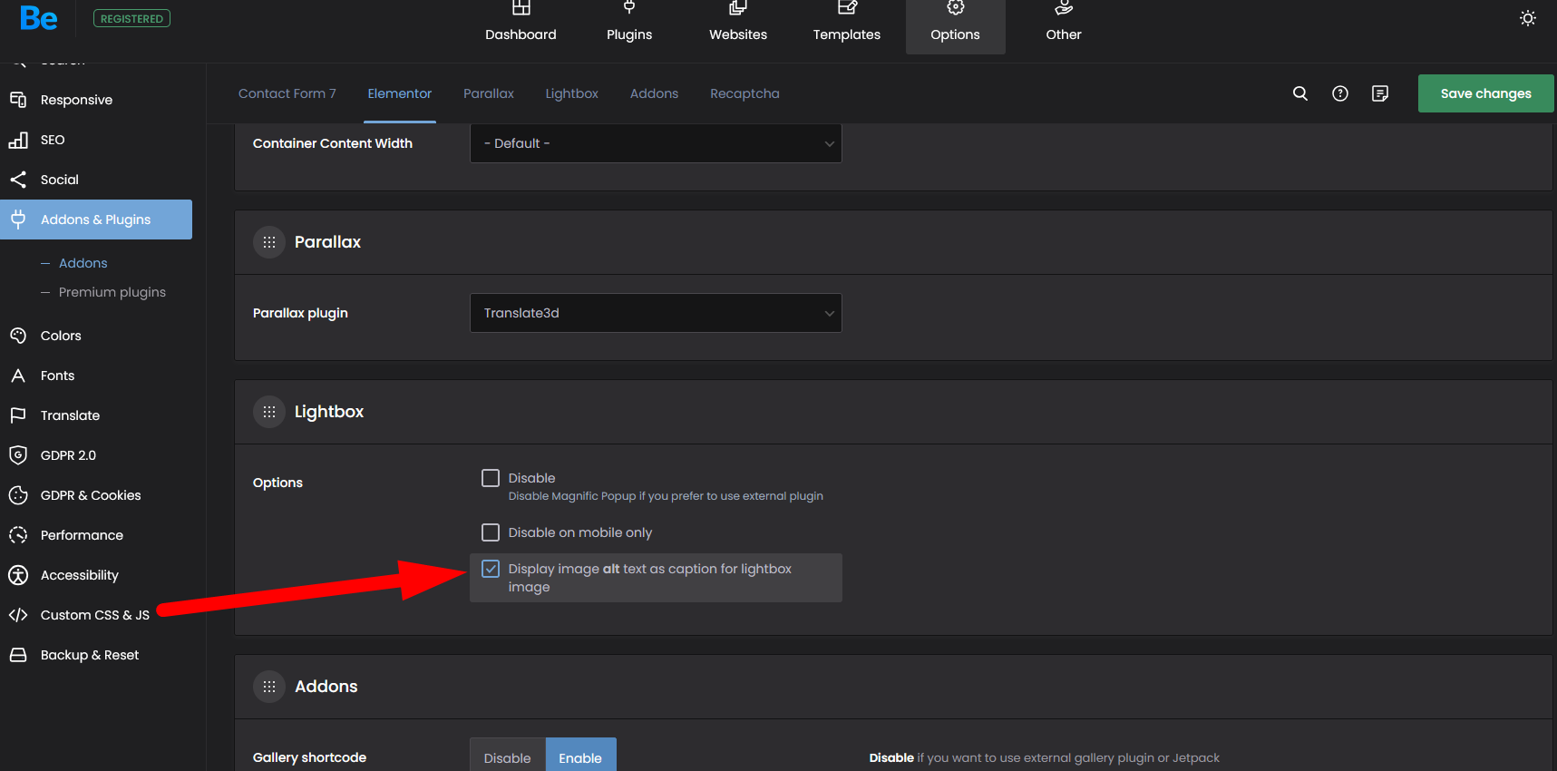 If you want to display text in the lightbox, you can activate the option "Display image alt text as caption for lightbox image" in Betheme -> Theme options -> Addons & Plugins -> Addons: