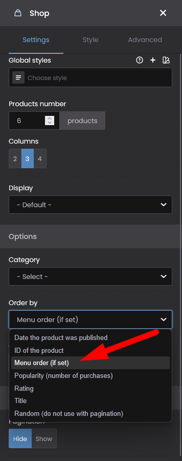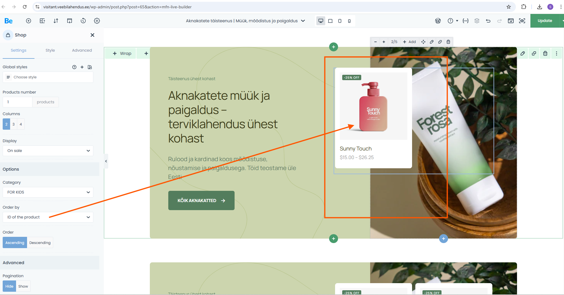 Under Order by, I selected ID of the product, but I cannot see where I am supposed to enter the product ID.