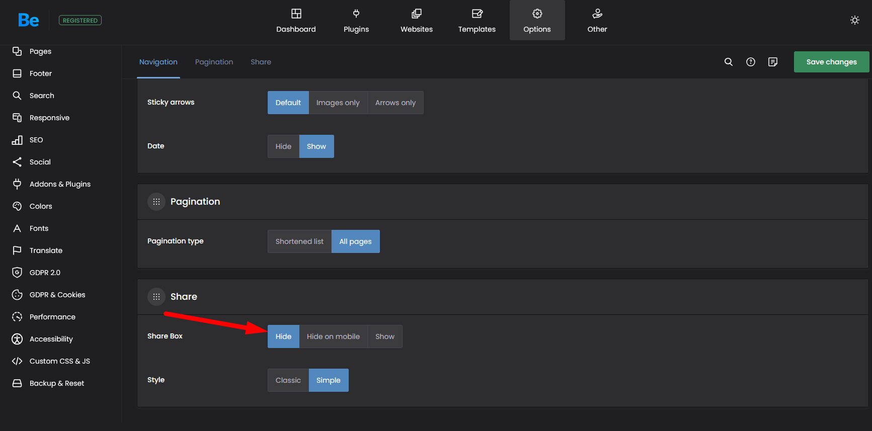 3) Go to Betheme -> Theme options -> Global -> Navigation & Share, and Hide the Share Box: