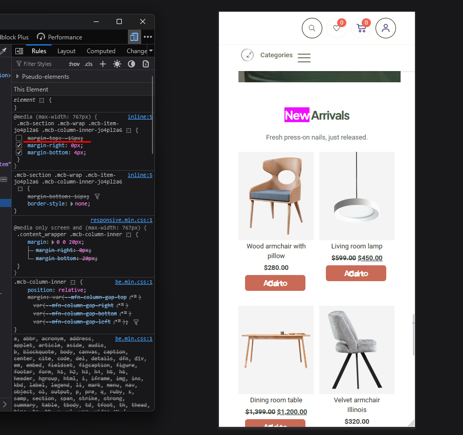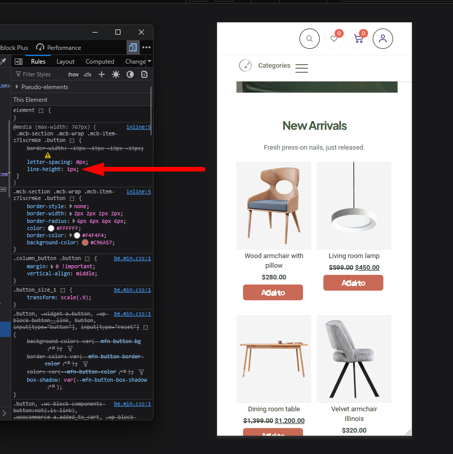 I'm experiencing an unexpected product display error in the mobile section. Is it possible to fix the text, price, and call to action in the correct position regardless of the amount of text? If not, how can I fix it? The product name can be long or short, and if it's not fixed, it will cause the unexpected display error.
