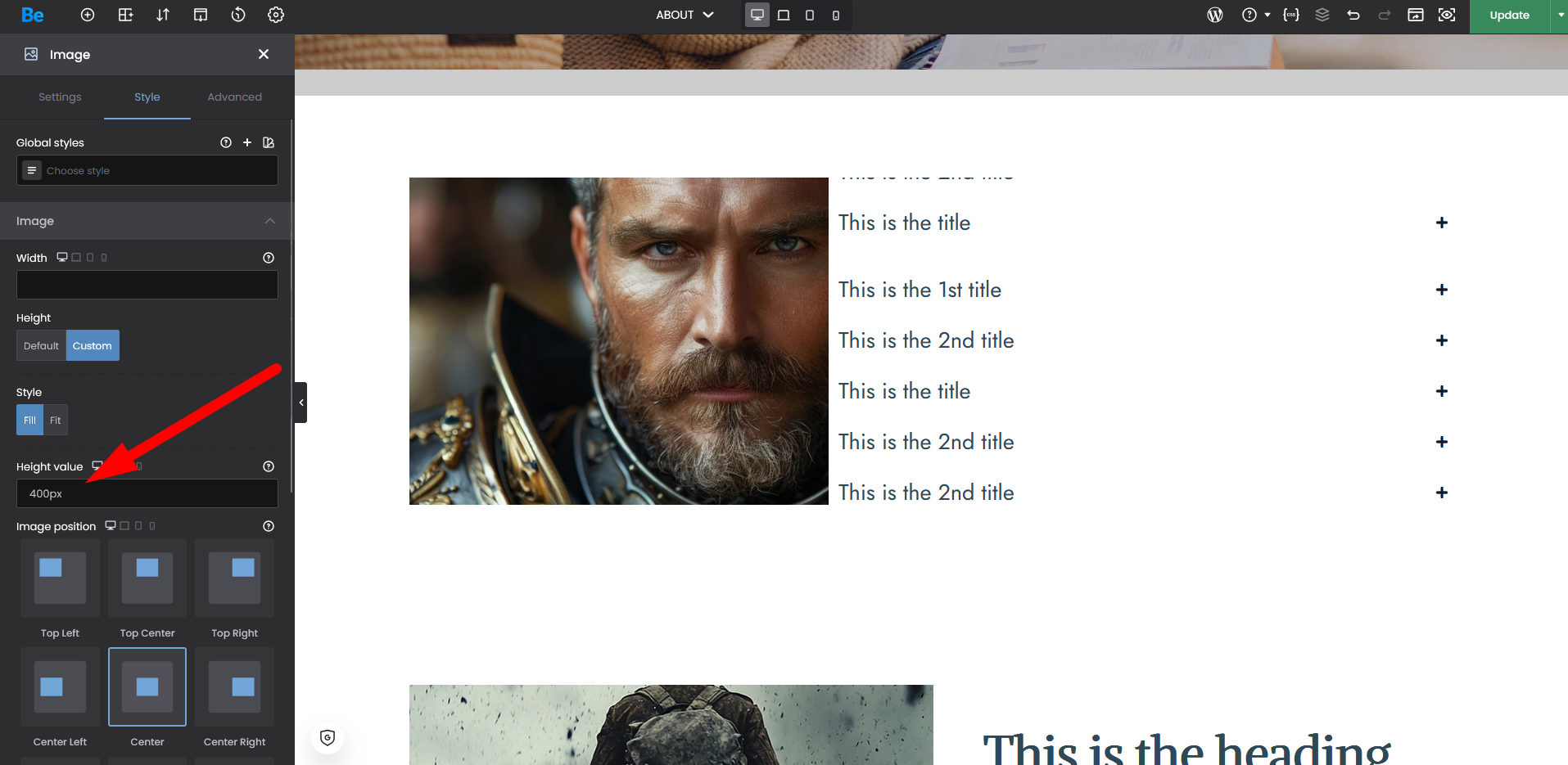 now the left container with the image is set to 950px high... but I would like it to be 750px... as I explained above