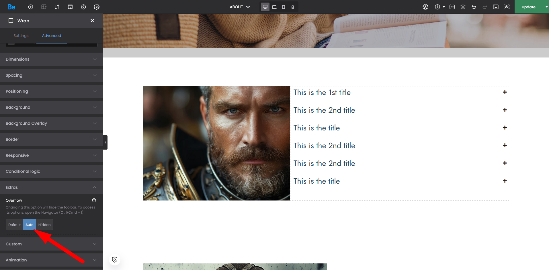 Maybe try this. Set exact custom height for the image, and the wrap on the right, but to the wrap also change overflow to auto: