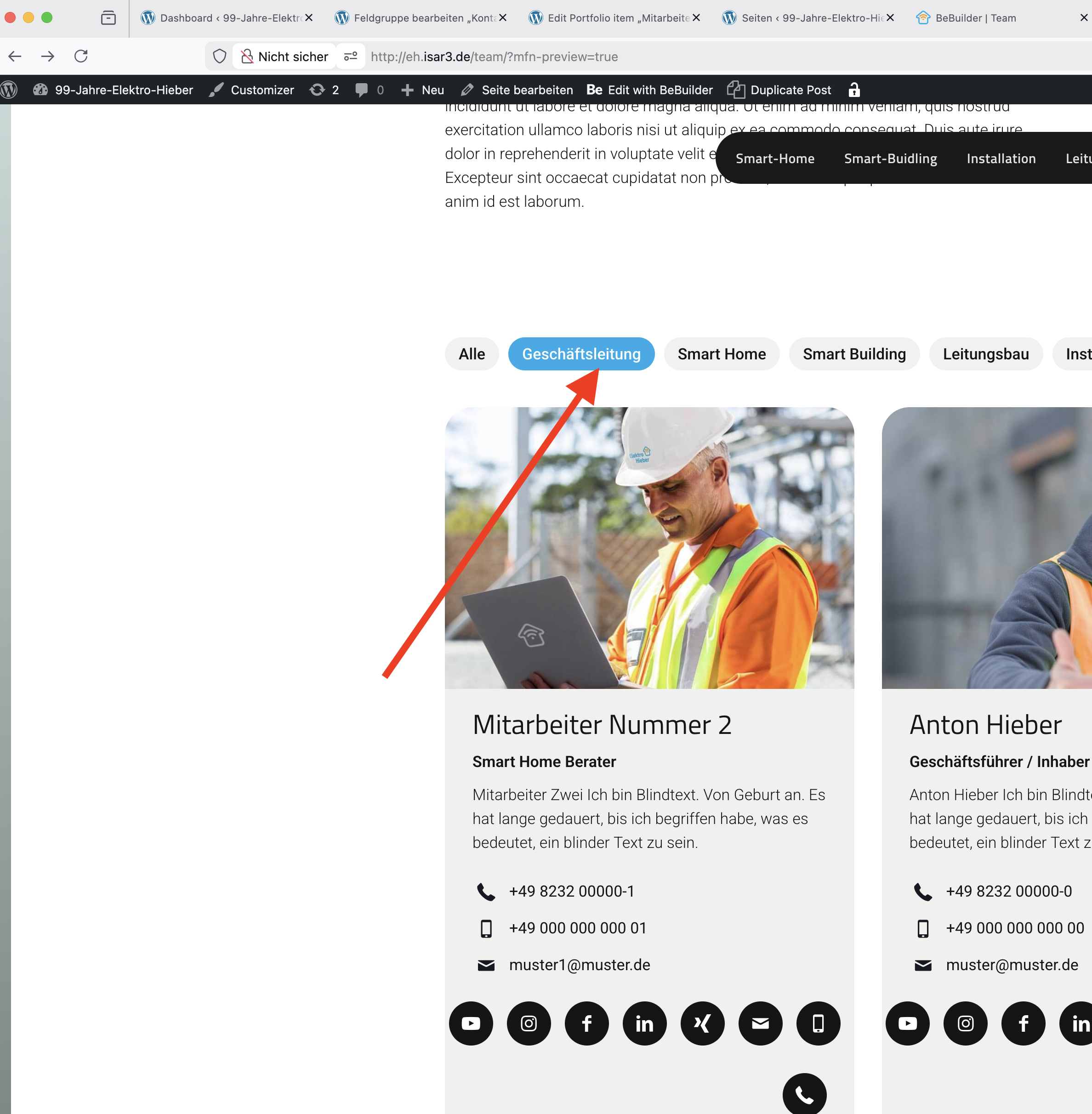As for now only the filters "Alle", "Geschäftsleitung" and "Smart Home" are being used - through ACF metas.