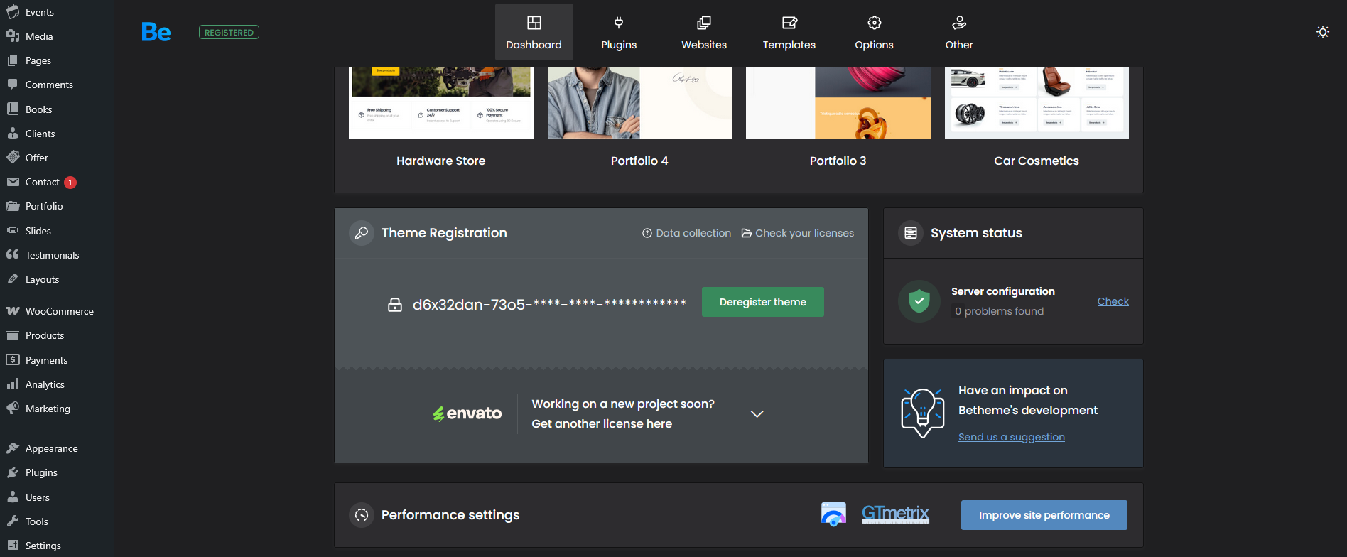 In this situation, you must download a fresh Betheme package from ThemeForest, replace the currently installed one, and you will be able to register your license then.
