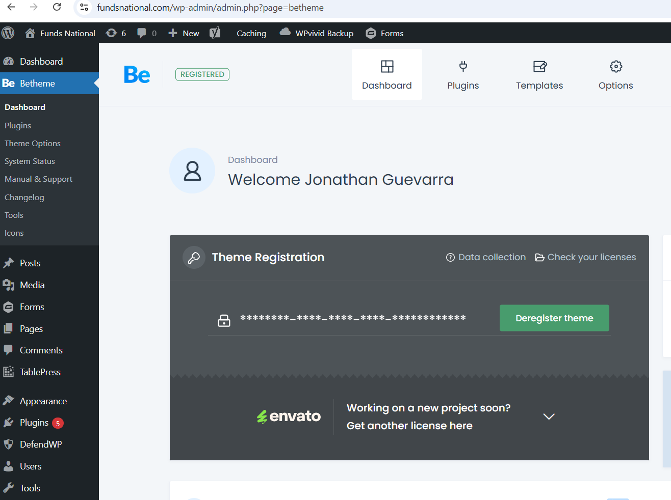 I have a WordPress theme that is currently registered under a different account. I would like to deregister the existing license and activate the new license I purchased. However, I’m unable to register the new license because the old one is still associated with the previous WordPress site owner’s account.