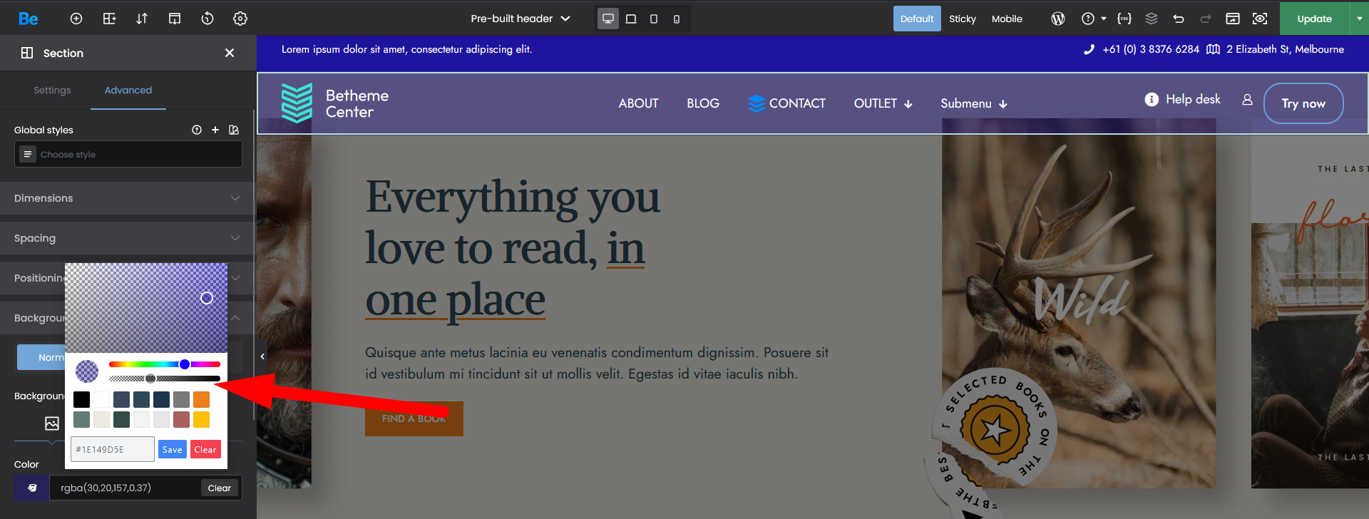 Then, for the section background, set transparency: