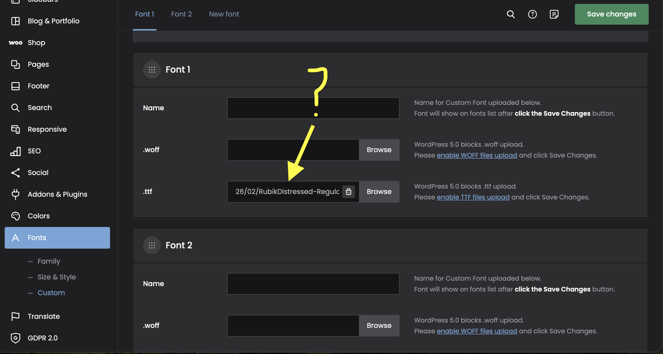 2 - After uploading the font, in this case, Rubik Distressed, it's still not loading it on a page: