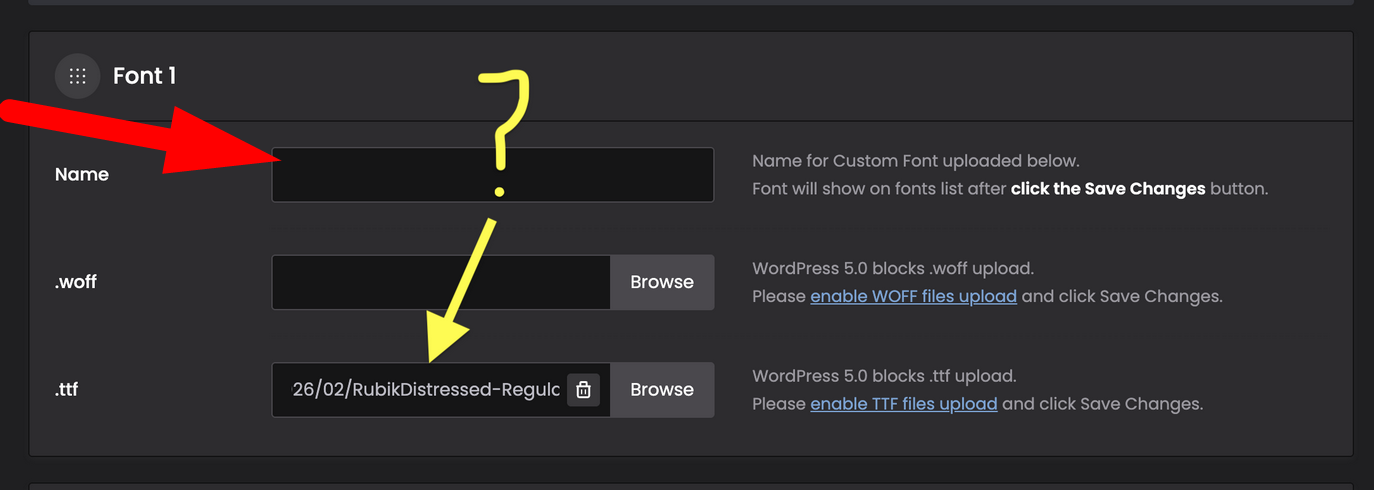 Here's the CSS I put in Theme Options (see below) while putting this HTML in the Visual Editor text, but it isn't working - the font Rubik Distressed - isn't loading. The HTML: <p class="dropcap_1">Once upon a time, in a land far away... It’s important because of the things that have happened in my personal life concerning this subject.</p>