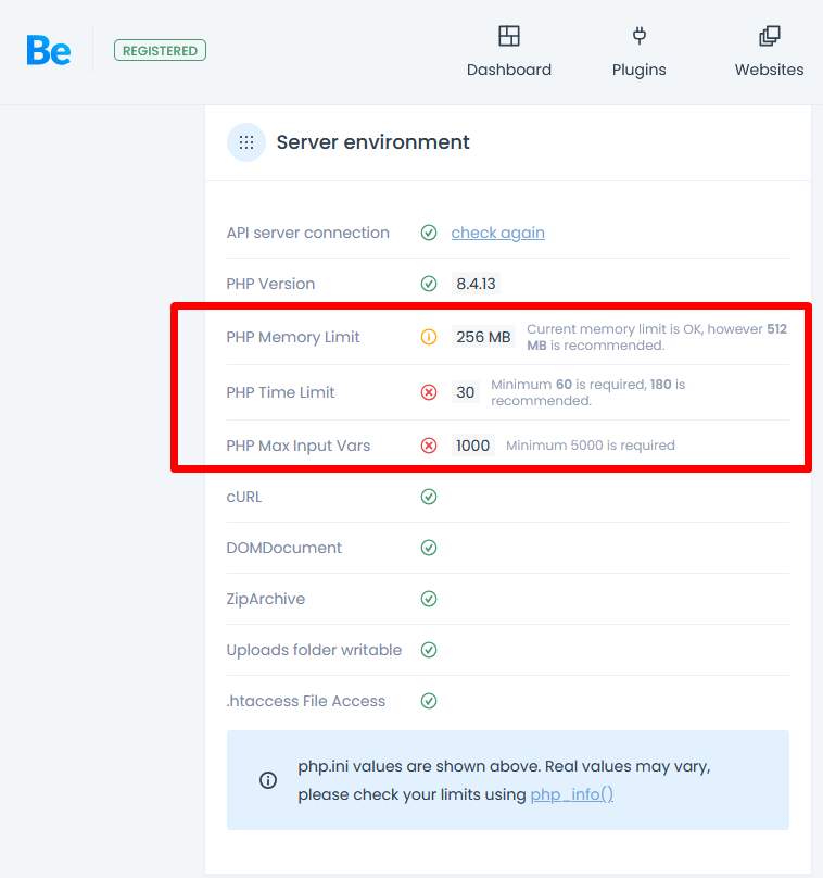 Your hosting provider should make appropriate adjustments to these values.
