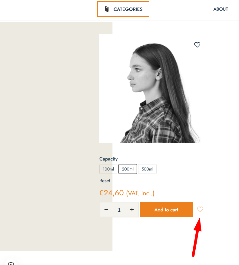 How can I add wishlist element on Woocommerce single product page template? Right now user can add to wishlist on product listing page by hovering on image and tapping/clicking wishlist (heart) icon. (sample below)