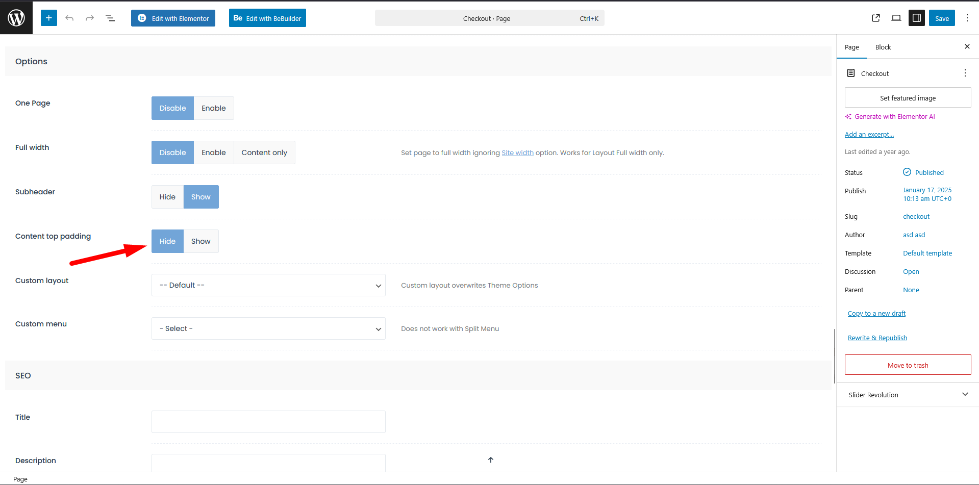 Thanks it works perfect now. Can you help me please remove in Checkout page white open space which is above subheader? Here's link of checkout: https://raqedo.com/uzsakymo-apmokejimas/