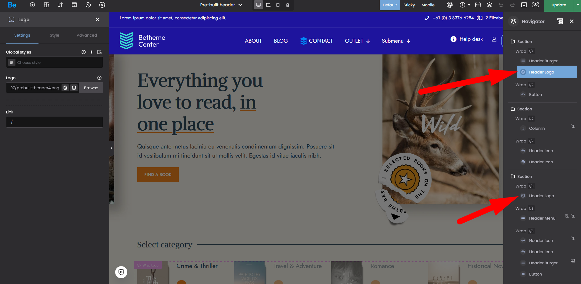 Then check all Header Logo elements you have there: