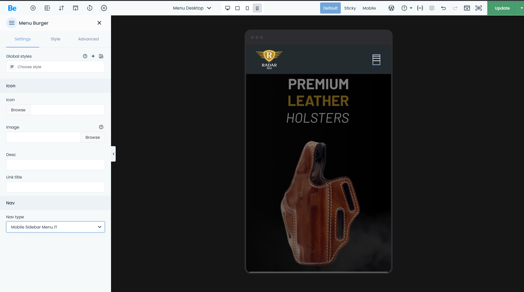 Menu mobile issue using template