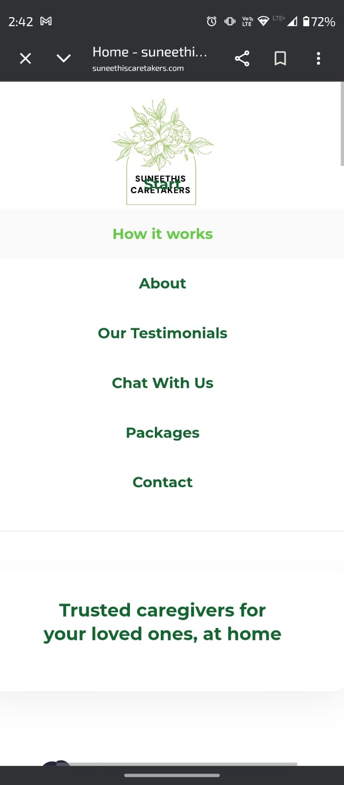 I am reaching out to seek your advice regarding an adjustment I made to the mobile logo on my website, https://suneethiscaretakers.com/. I attempted to increase its size but would appreciate any guidance you could provide to improve it further.