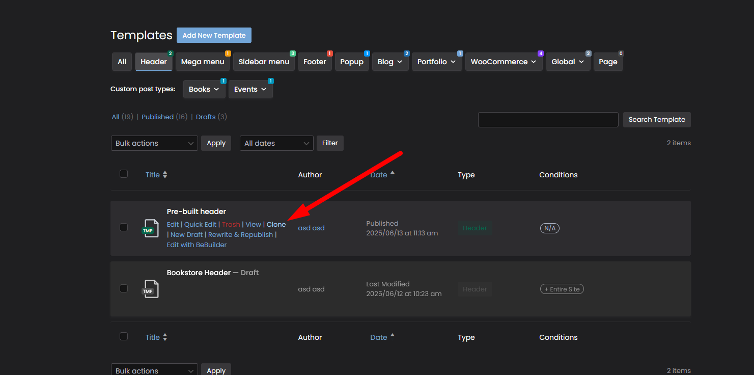 Is it possible to duplicate a Header Template built within BeTheme and then modify? Or, must I start from scratch for each one?