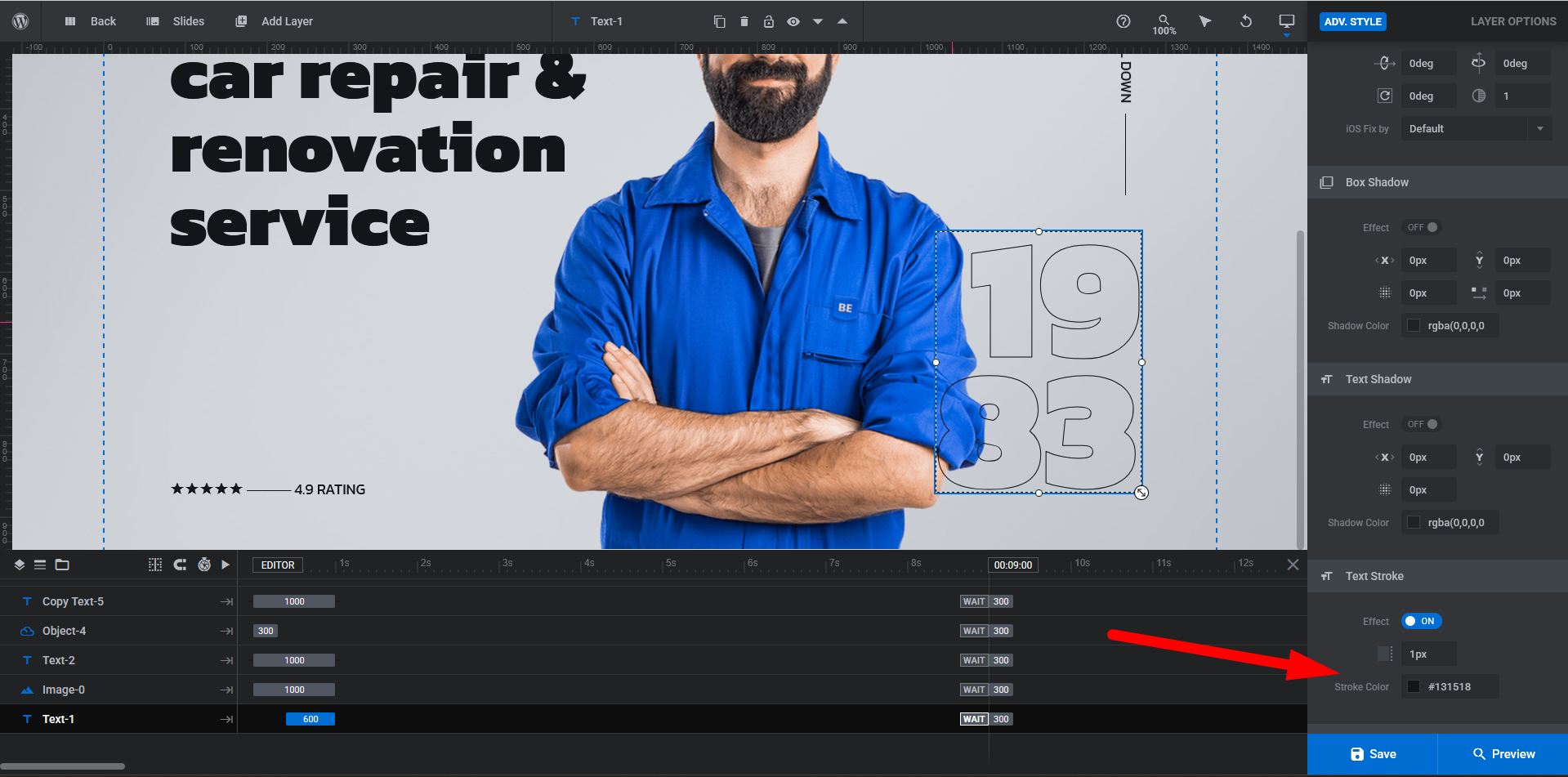 I’m using the BeMechanic7 pre-built website and needed to change the colors in the homepage slider. There’s a year in the background with a dark border, and I’d like to match it to the rest of my text colors. I’ve looked everywhere but can’t find where to change the color. Could you please give me a tip?