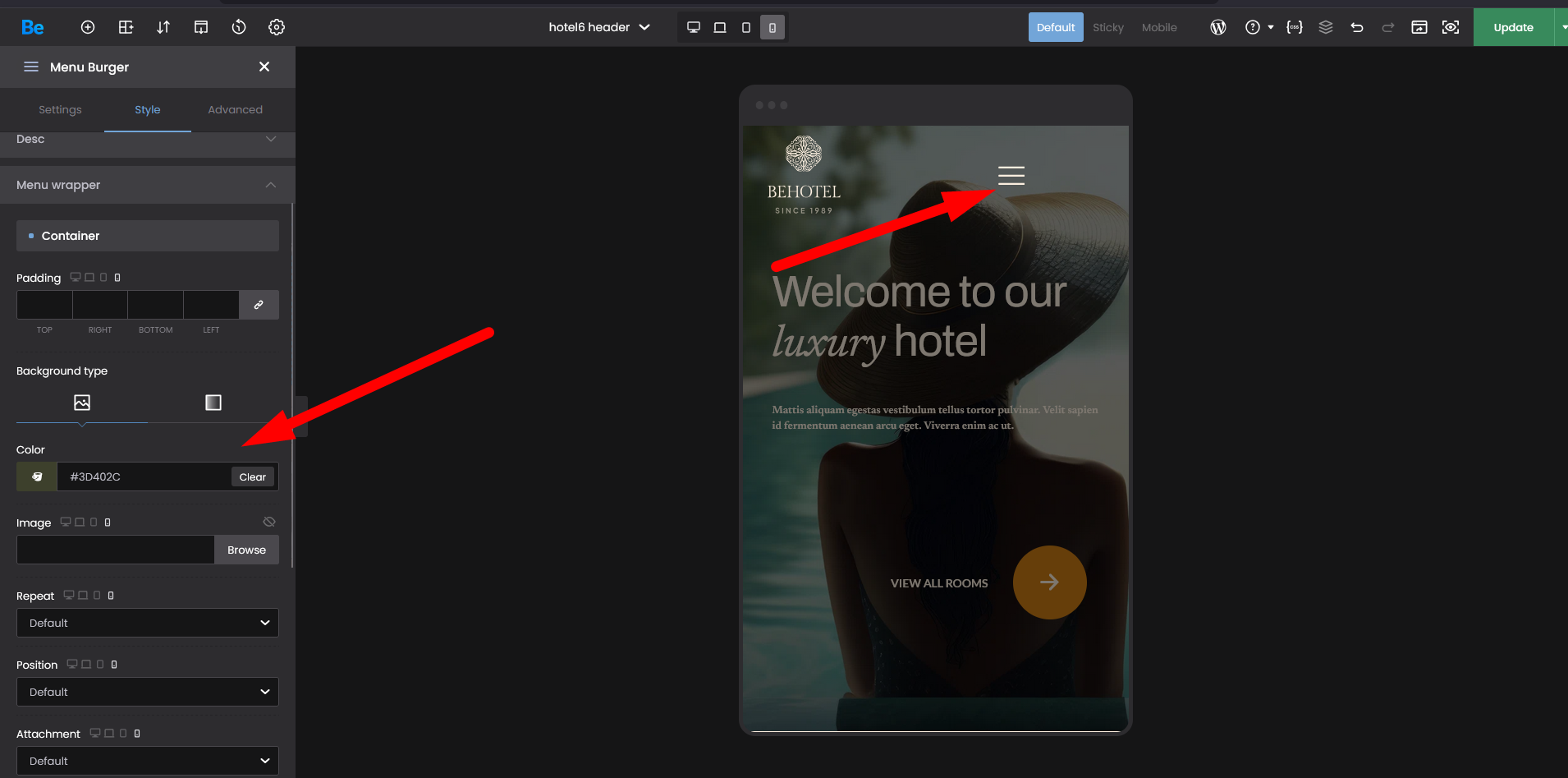I can't change the design of my main menu. Maybe I just don't see it, but I can't find any options regarding the font, underlining, background-color or any other settings for the mobile menu.