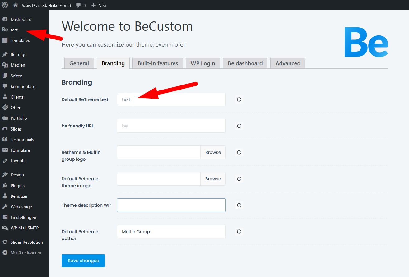„Becustom“ settings link sends me to 404 page