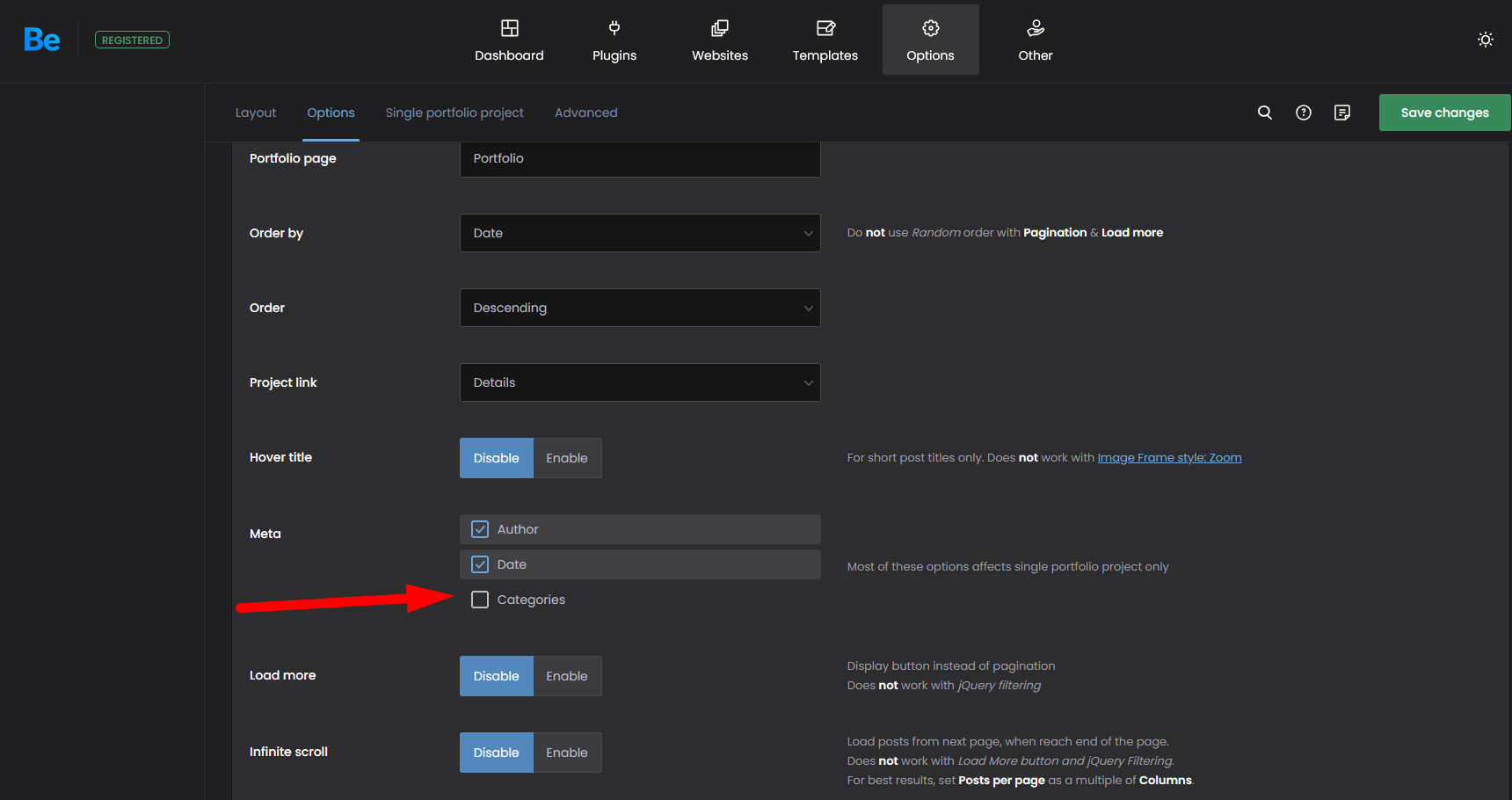 1) Please go to Betheme -> Theme options -> Blog & Portfolio -> Portfolio, and uncheck the Categories option: