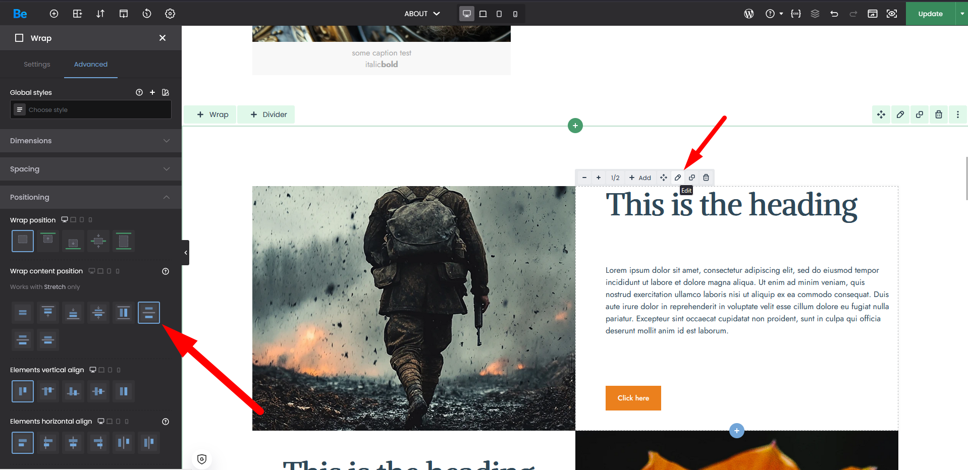 My client would like the image and text to align vertically—both at the top and bottom edges of the image.
