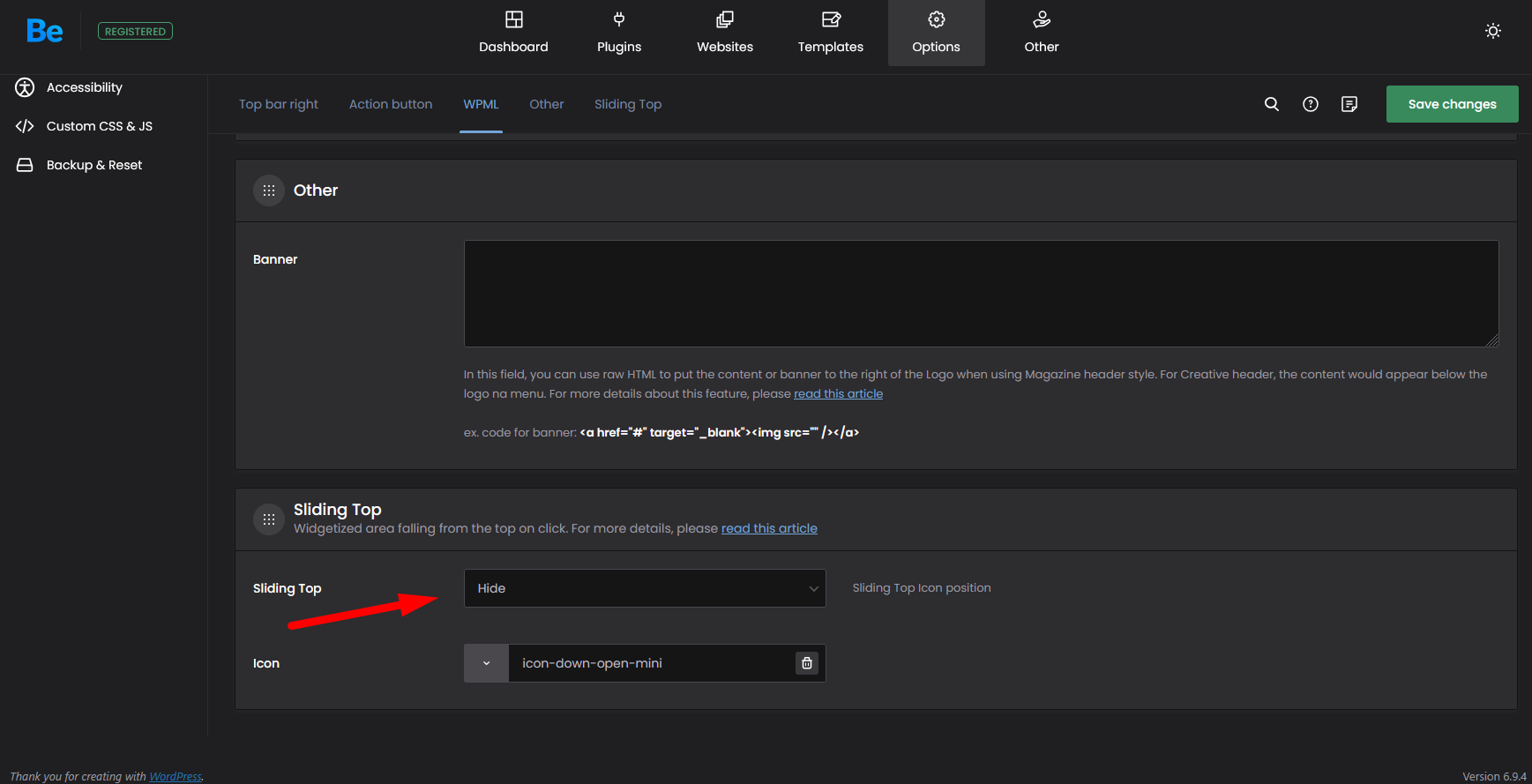 Hi, Can you help pointing where can I go to remove the gray top bar from the website? Tried looking around and couldnt find it.