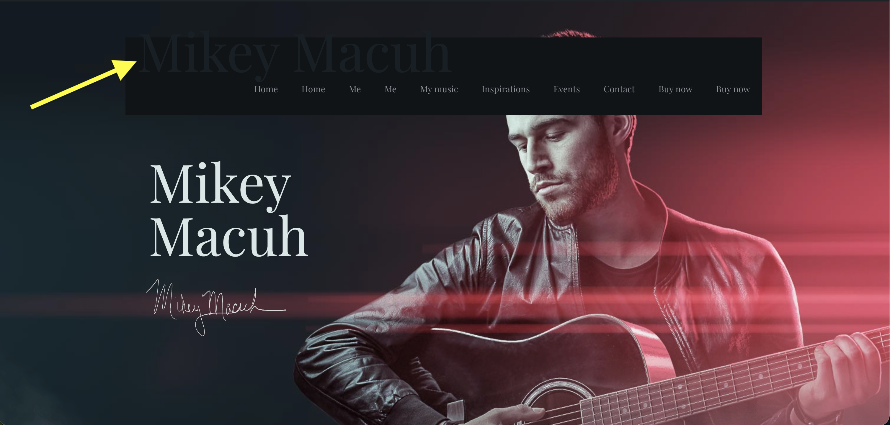 On this page, I need to adjust the color and size of the text Mikey Macuh that's on the top of the page. I need to use Text logo instead of the an image because when the image is that small - 304 px x 44 px - it's pixelating.