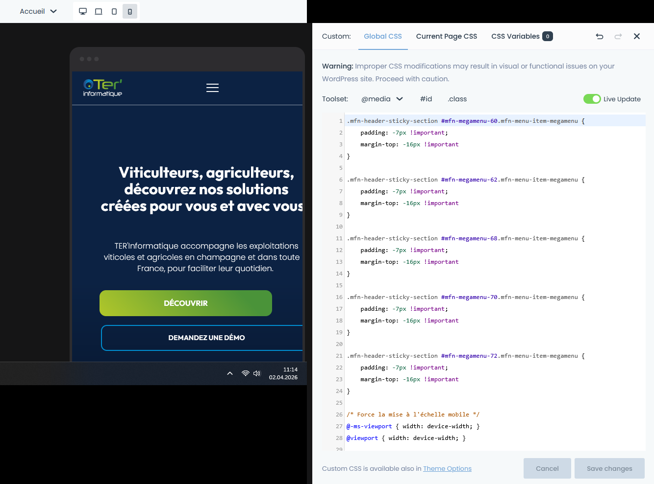 I am facing a critical responsive issue on my website after updating to the latest version of Betheme. The entire layout is shifting horizontally on mobile devices, and I’ve isolated the cause: it seems to be related to the Wrap positioning settings which have changed between versions.