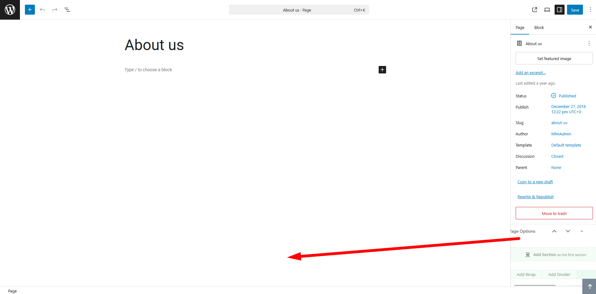 Please open Preferences in the page edit, and see if you have Page Options enabled: