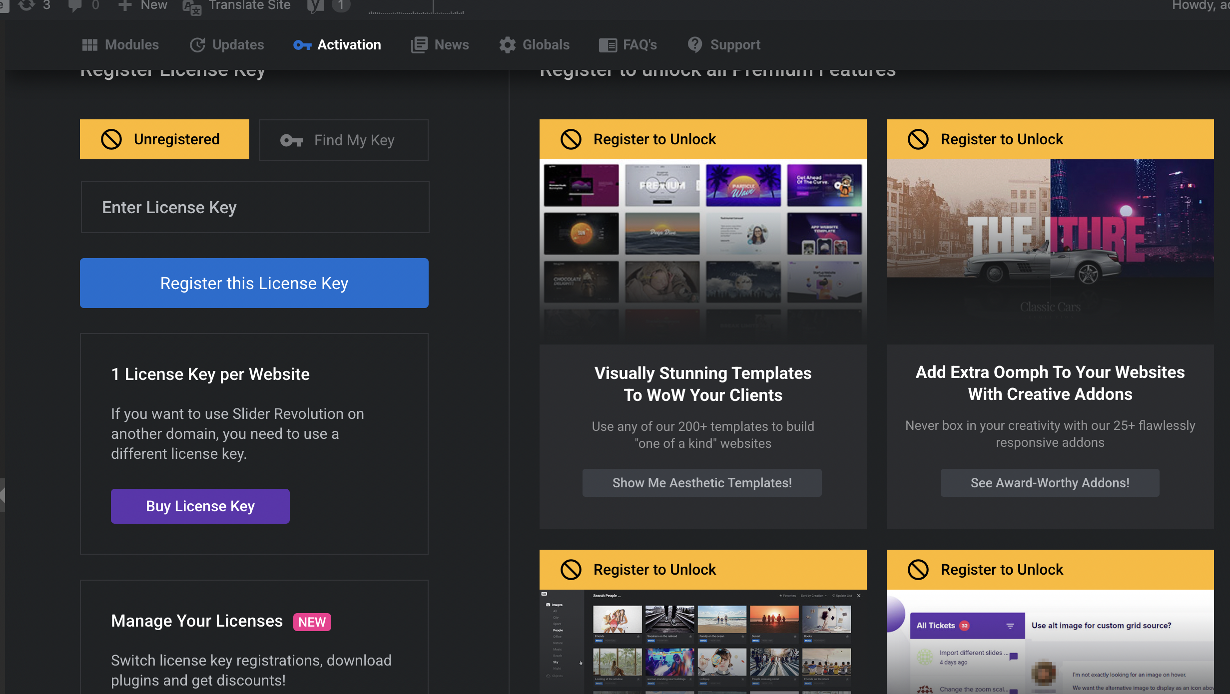 Slider Revolution templates are available only for a premium version of this plugin, which must be purchased separately.