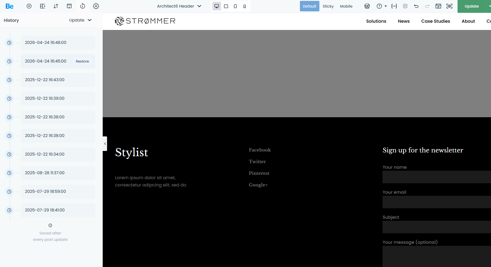 After updating to the new update for Betheme, my site, strommergroup.com, has lost its menu on some pages, the mobile version is not responding and my contact and complaints pages have lost the menu completely. Please can someone help?