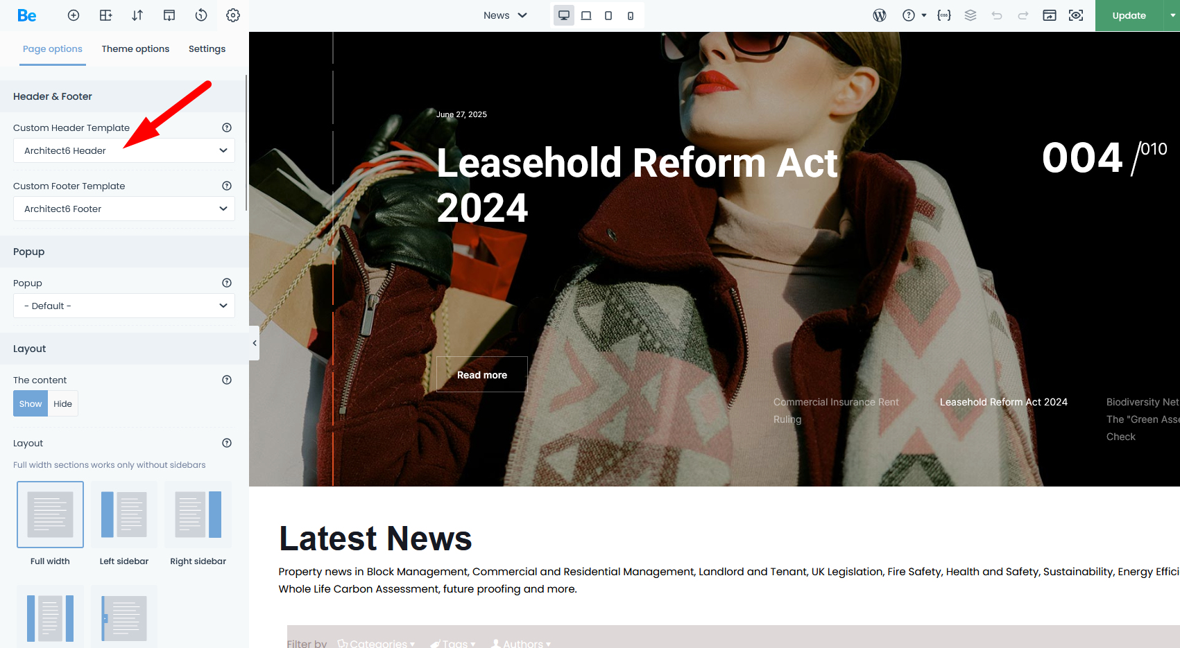 After new update Site has lost its menu on pages - and format in Betheme is all off template