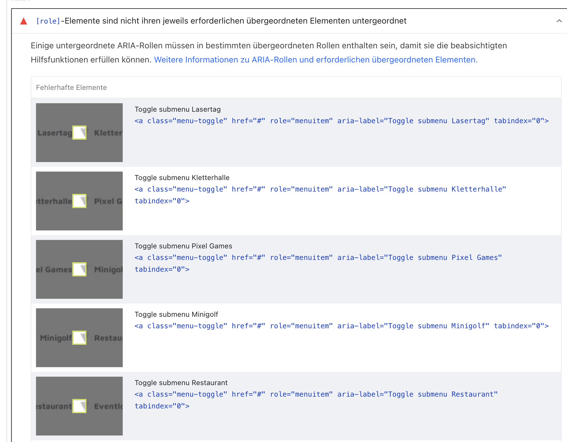 Now in the google check in accessibility it says [role]-Elemente sind nicht ihren jeweils erforderlichen übergeordneten Elementen untergeordnet.