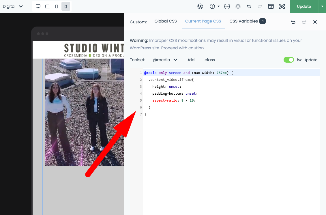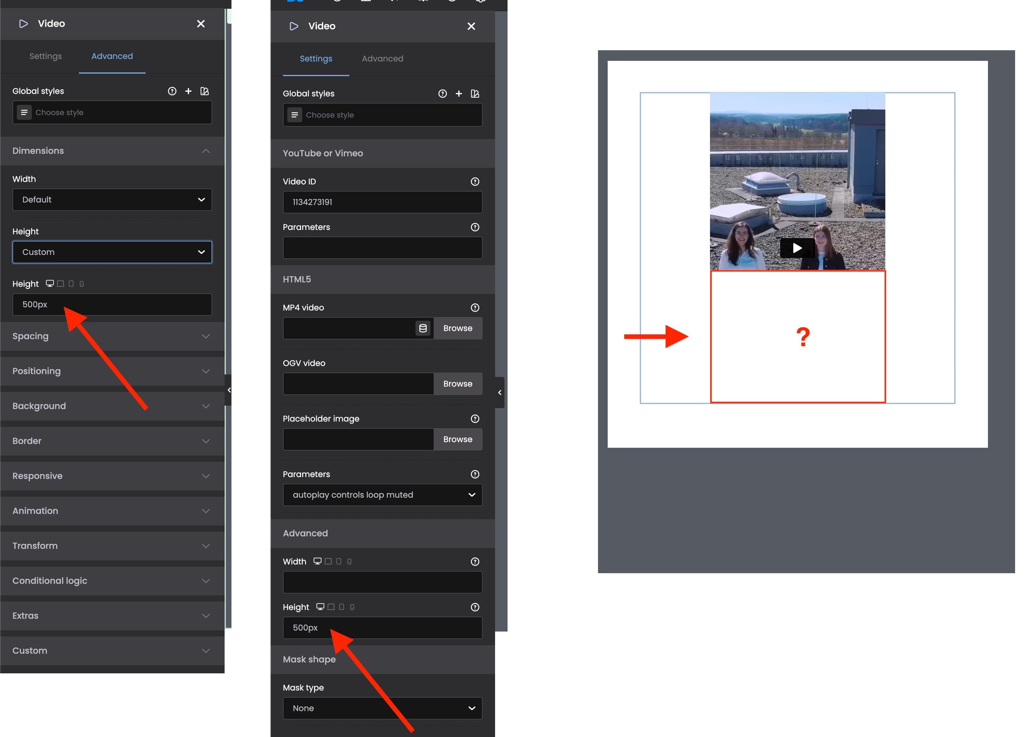 When placing a video, the problem occurs that only the top part is displayed (see screenshot), and the rest is cut off.