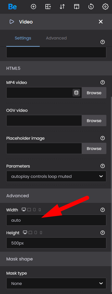 Please remove the height value from the Advanced tab, and in the Settings tab set width to auto: