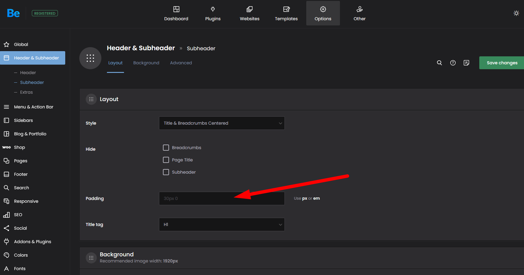 Subheader height is related to the padding set in Betheme -> Theme options -> Header & Subheader -> Subheader: