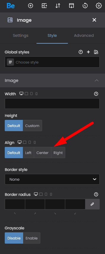 Did you use alignment options available in the Style tab of the image element?