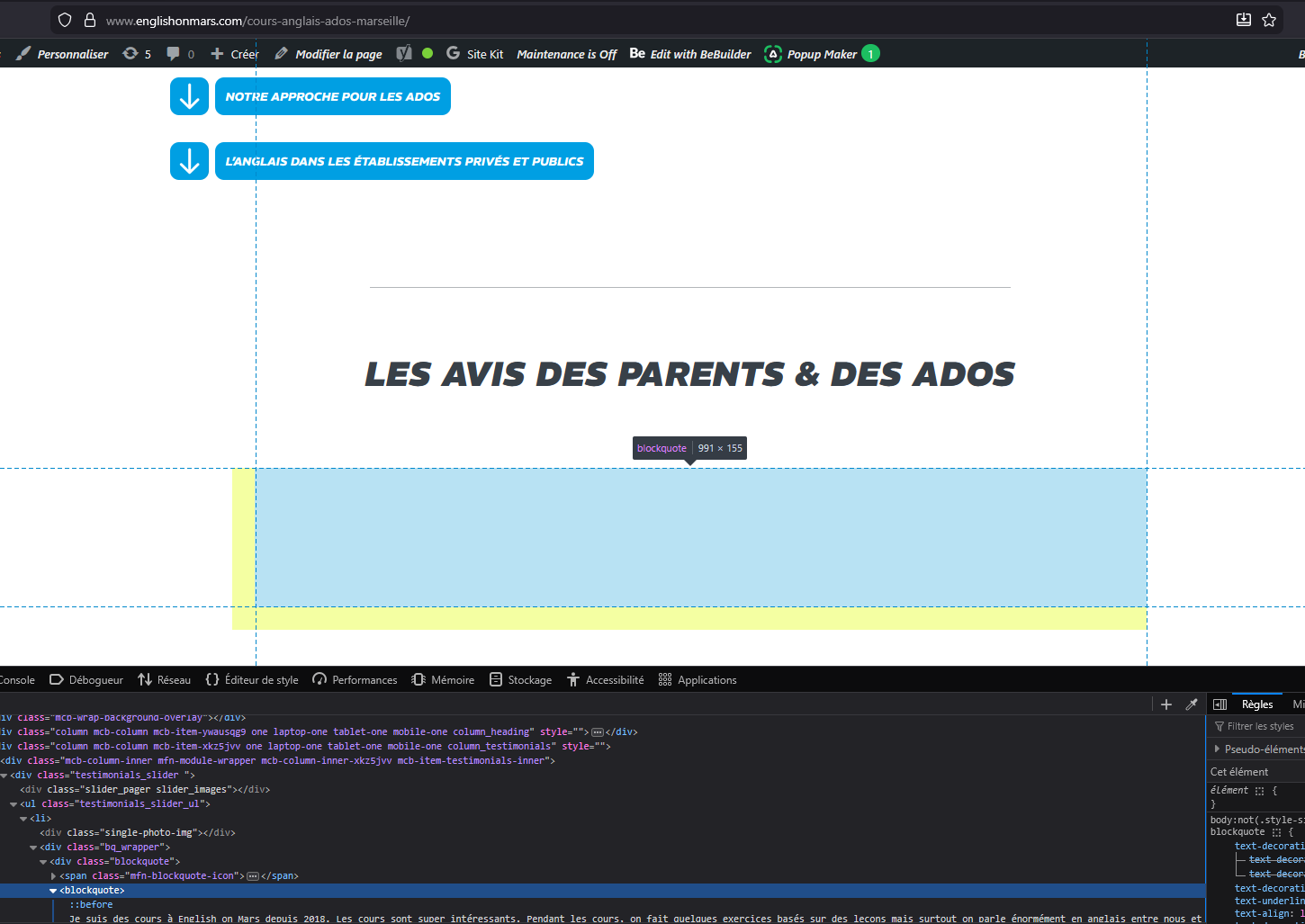 Problème d'affichage des avis clients "testimonial"