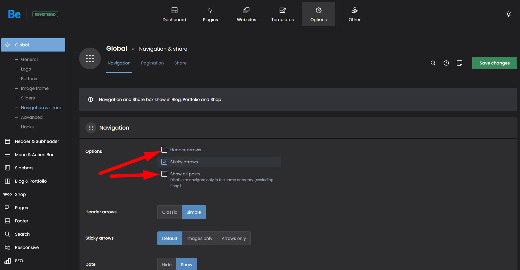 1) Go to Betheme -> Theme options -> Global -> Navigation & Share, and uncheck these two options: